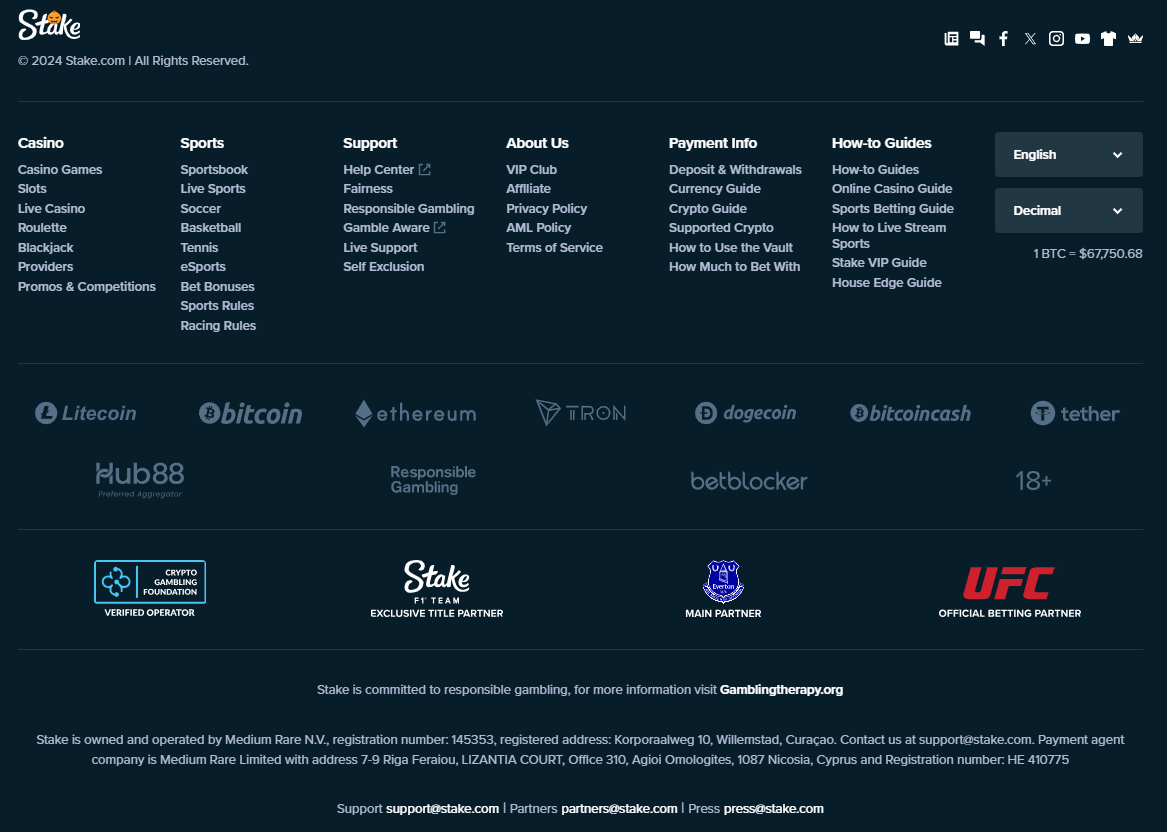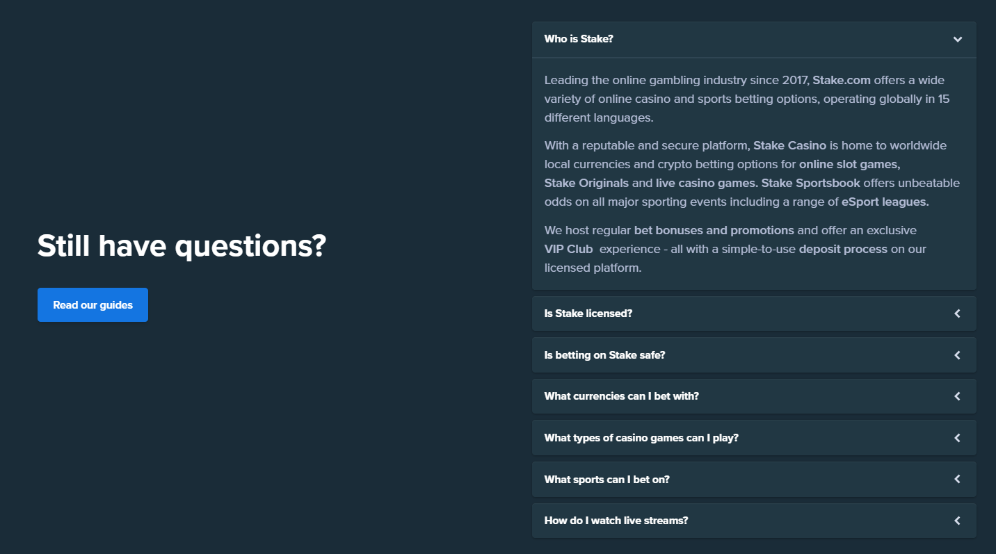 Stake understands the importance of product support to cover the needs of the user through the available contact points. Accessible 24/7, customer support provides quick solutions to questions or technical issues through: