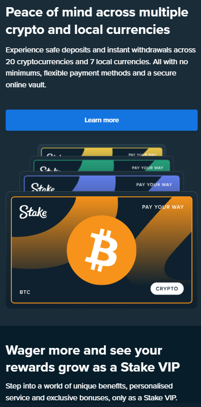 Extra options are e-wallets that Stake offers by Skrill and Neteller allowing for prompt and trouble-free online purchases.Bank Transfers