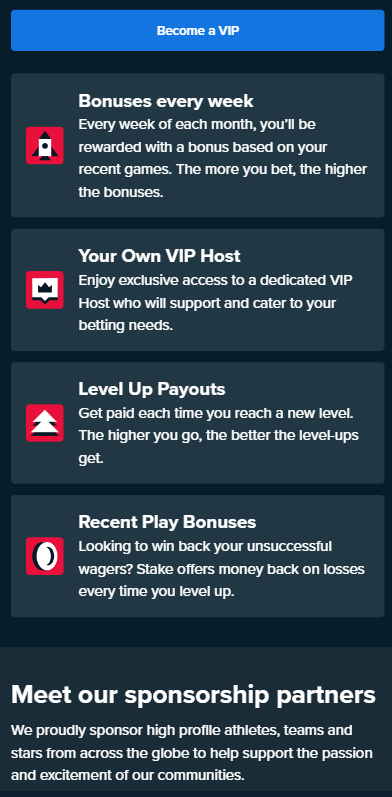 If you want an opportunity to bet without spending your money, then you can take advantage of free bets on stakes. This bonus is especially useful for newbies. It is specially designed for those who are new to this field and want to learn betting. Let me tell you, in this, you can bet for free. If you lose, then you do not lose any money. On the other hand, if you win the bet, then you do not get any benefit either. In simple words, you can use it only for practice.VIP Rewards: