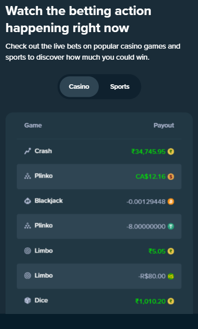 One thing I have noticed is that, although Stake.com India is a crypto-based platform, users can deposit and withdraw money in Indian Rupees easily via UPI or net banking among others. Overall, Stake is a good platform in the world of online betting given that it offers easy access to betting options and a convenient betting process.